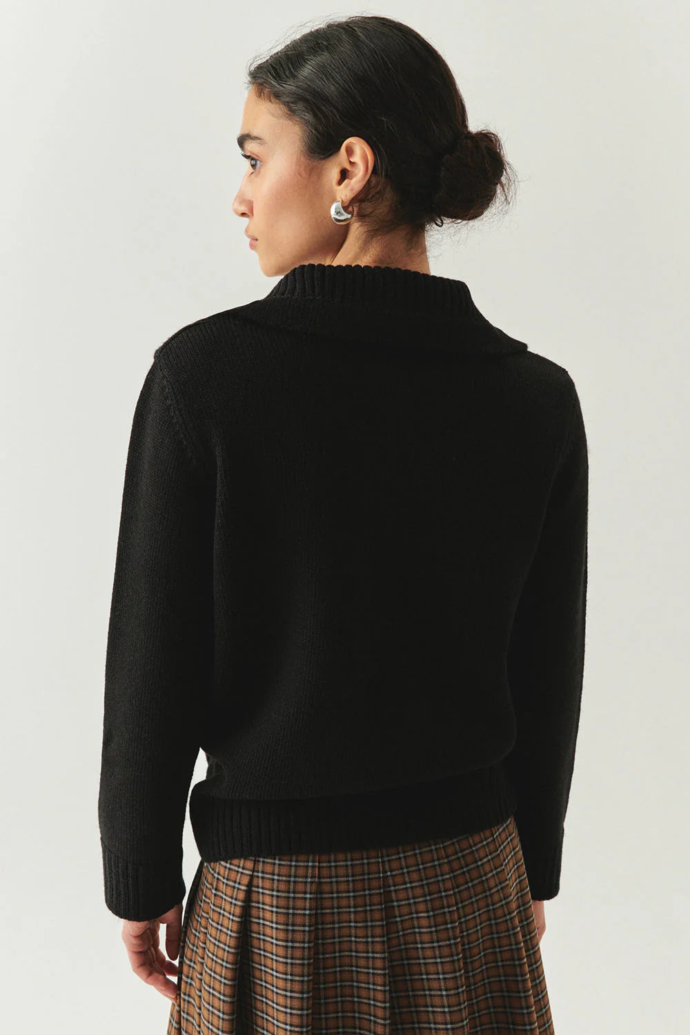 The Addison Sweater Blouse features a wide collar with zip detail and ribbed hems, bringing a casual-cool attitude to knitwear.