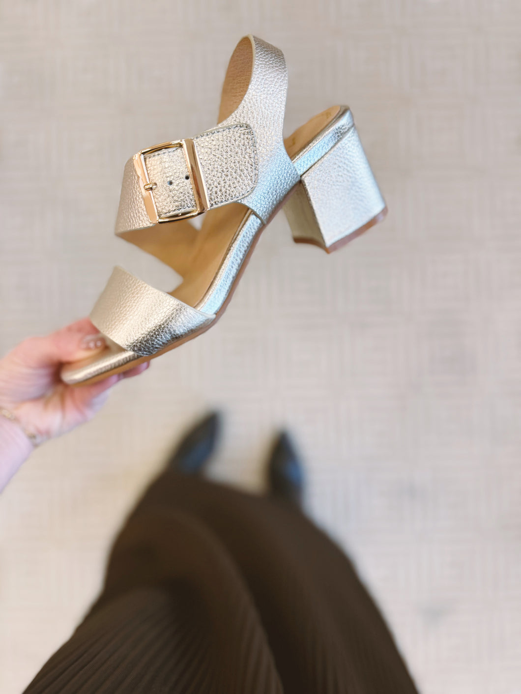 This shoe debunks the myth that heels can't be comfortable. Wear this style with confidence, and know that your feet will feel and look good no matter where you go. Velcro closure and a block heel.