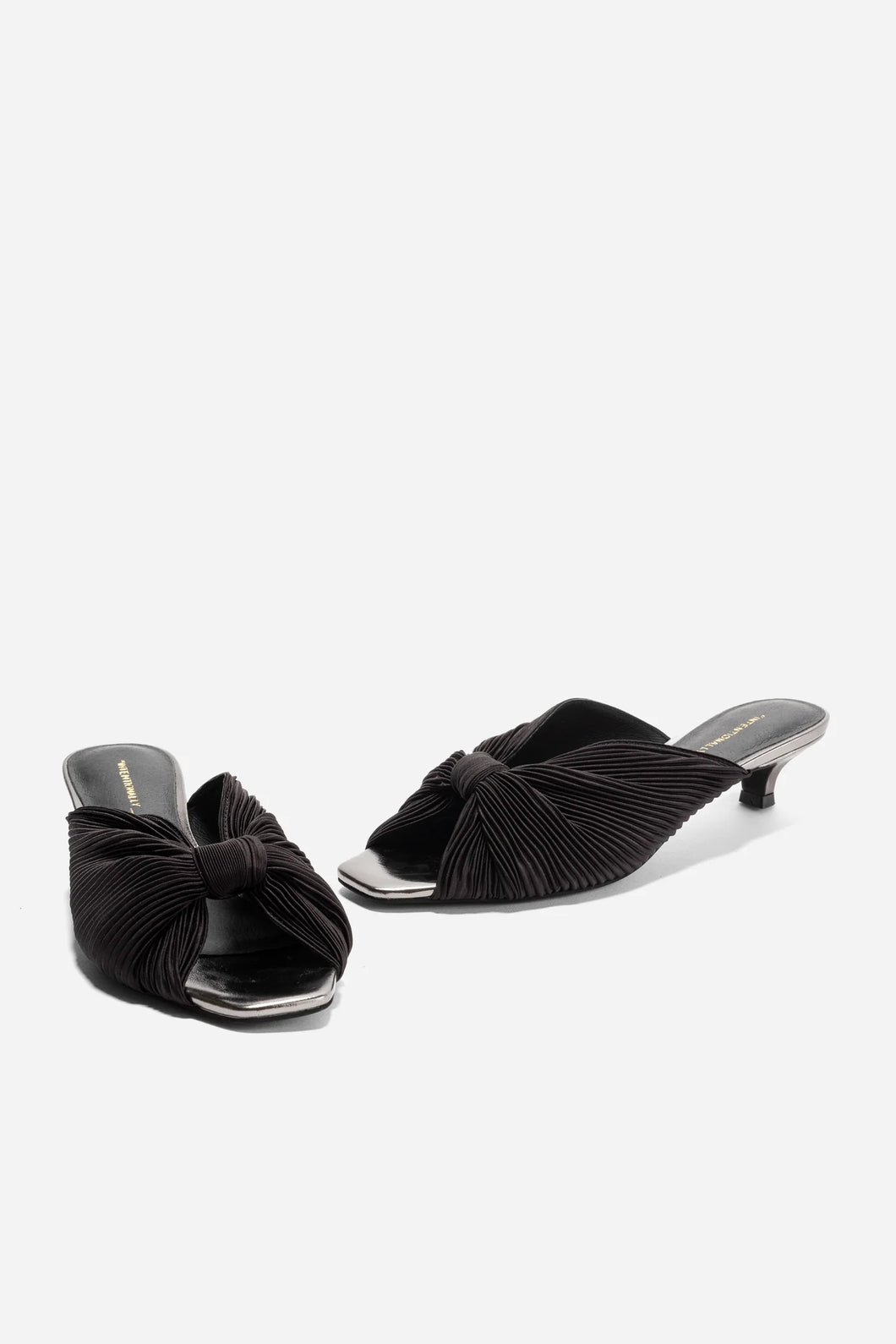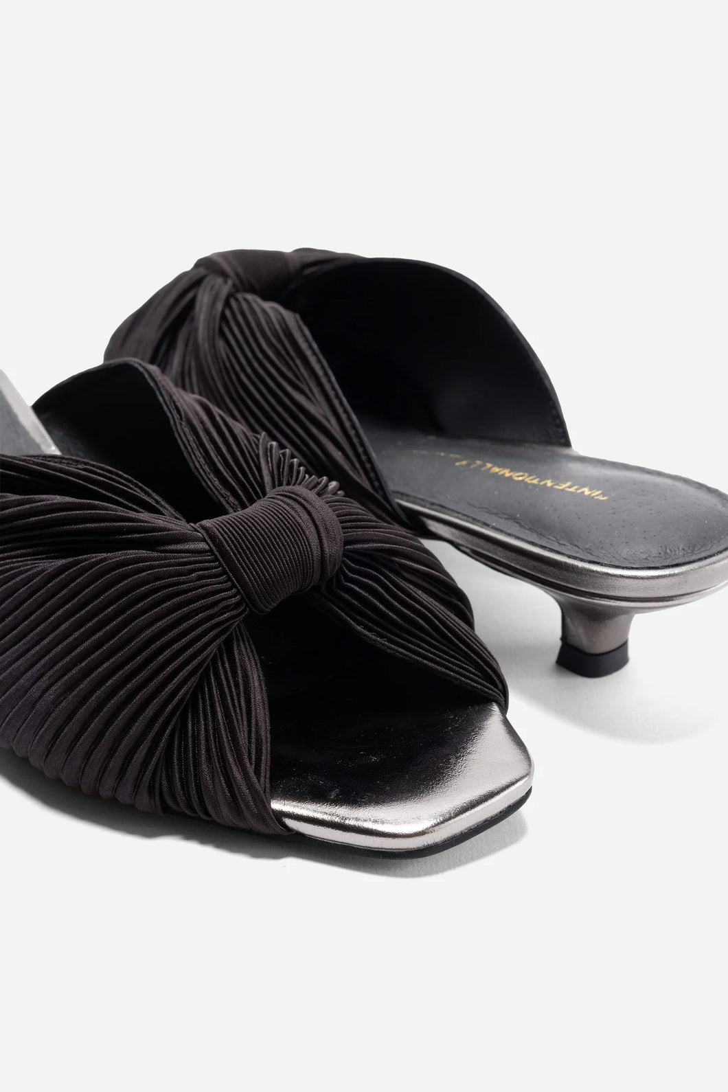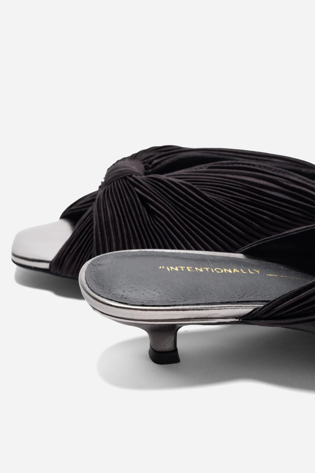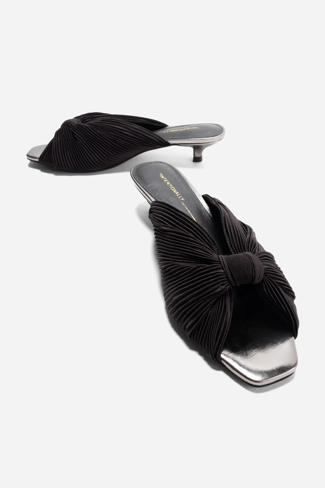 A gorgeous vintage inspired kitten heel for any occasion. The micro-pleated satin and gathered knot detail give the Curfew Kitten Heel an elegant evening vibe that is flirty and unexpected. The perfect inset low kitten heel and contrasting color detail on the footbed feels on trend and timeless.
