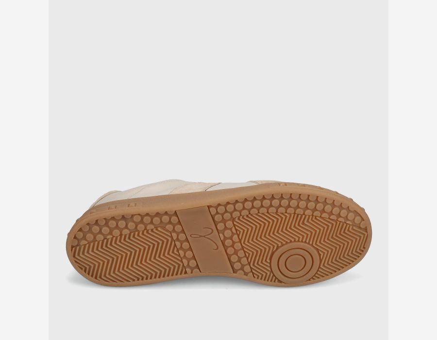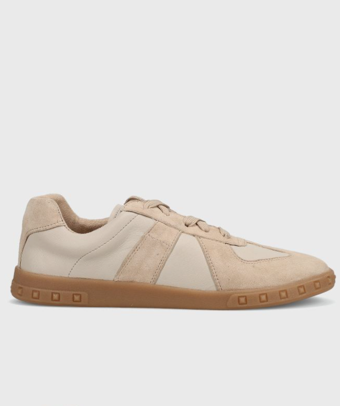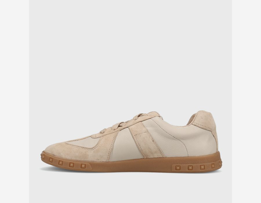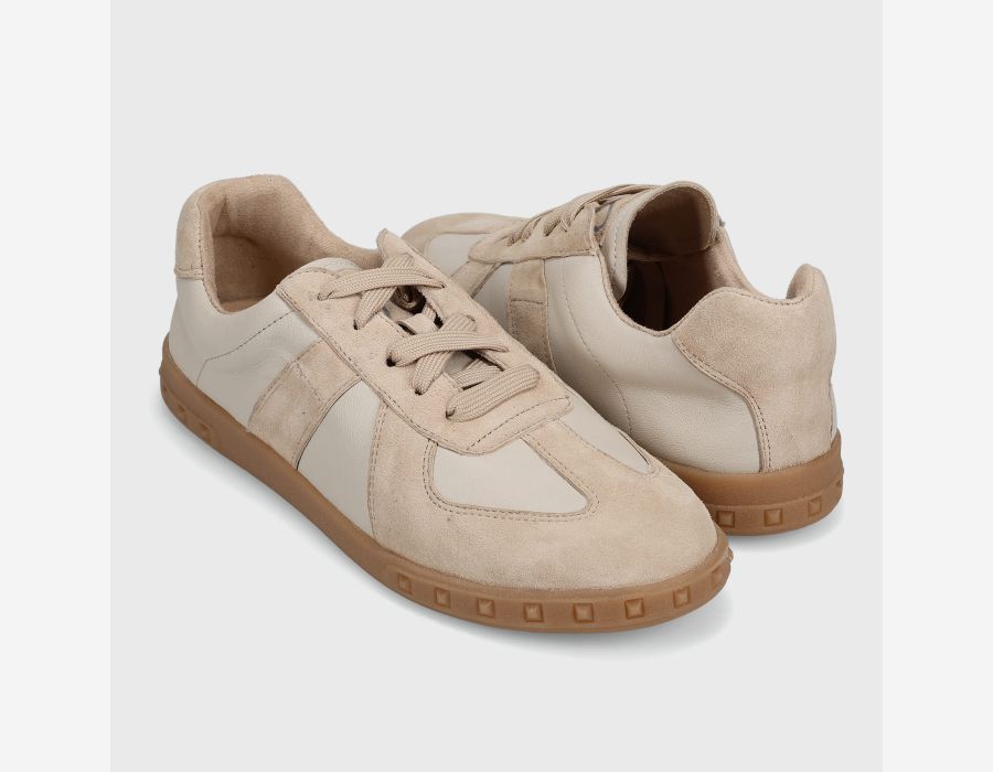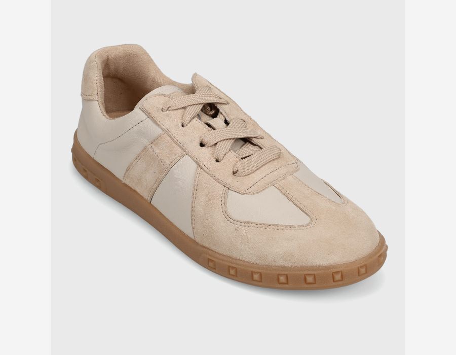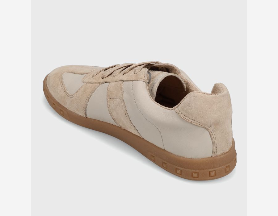 Lace-up sneaker in leather-suede mix. Removable padded insole. 1 inch rubber sole