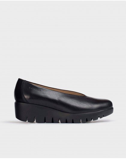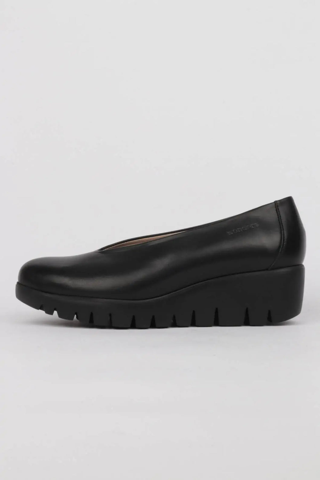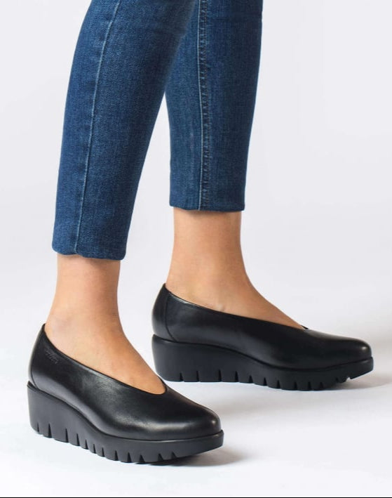 Wonders Slip-On Leather Shoes in Black - which feature a classic style with a modern twist, making them perfect for any occasion. The 4cm wedge adds just the right amount of height without sacrificing comfort. The slip-on design of these shoes makes them easy to wear and go, while the WondersFly™ technology ensures guaranteed lightness and comfort.