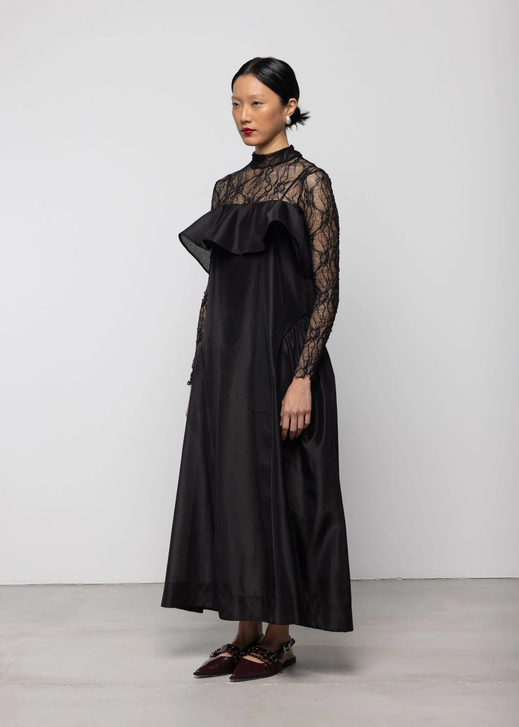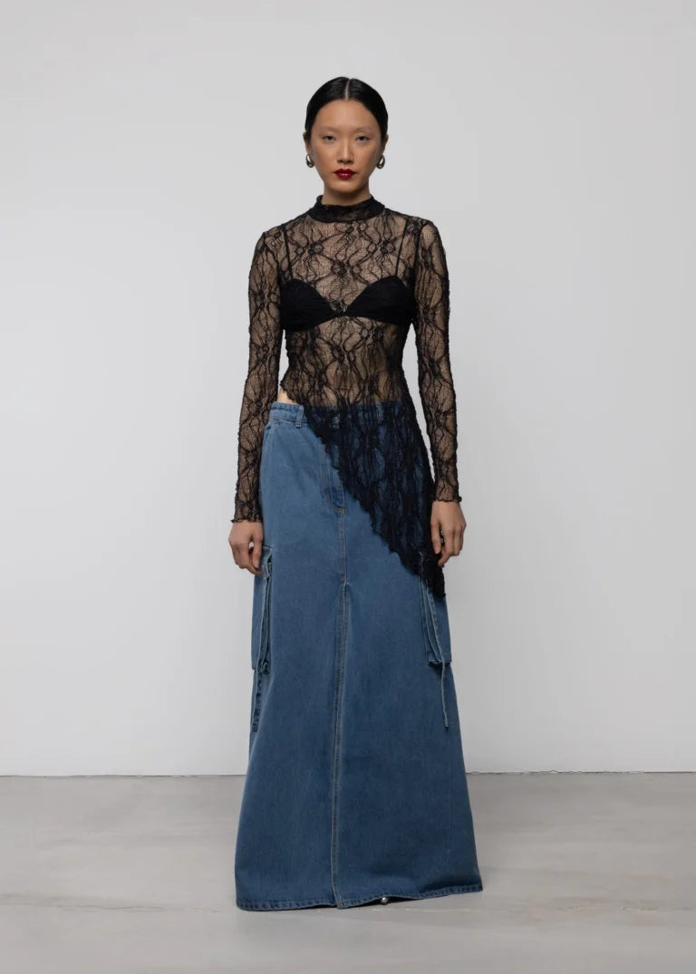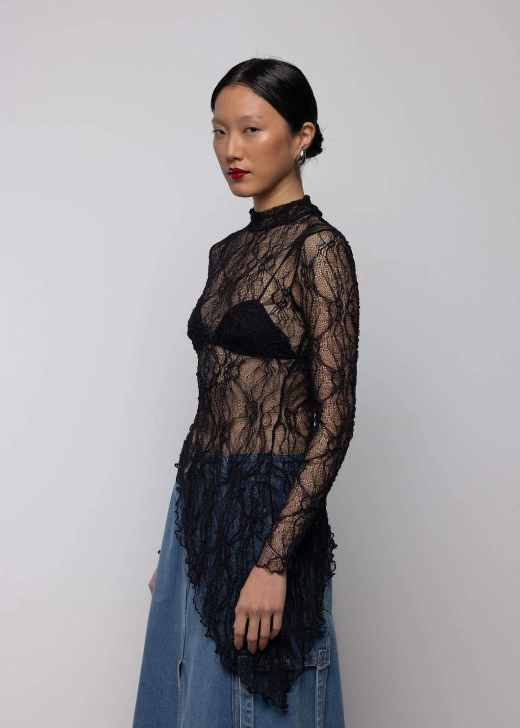 Lace Asymmetric High Neck Top