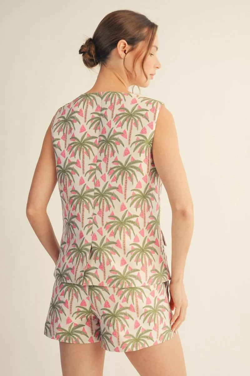 Elastic waist Palm Tree jacquard shorts with side pockets.
